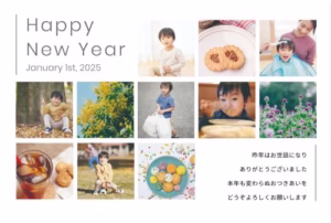 などがあります。若い世代や忙しい人に人気があり、デザインも1つに絞る必要がないので用途によって使い分けることができます。 例えば、家族写真入りの年賀デザイン、 ペットの可愛い写真、 子どもの成長記録など数パターン用意する人もいます。