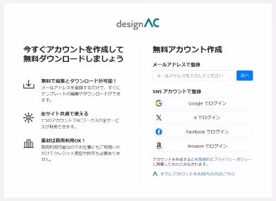 2.「SNSアカウントで登録」の項目から、Google、X、Facebook、Amazonをクリックし各アカウントでログインすると会員登録が完了します。