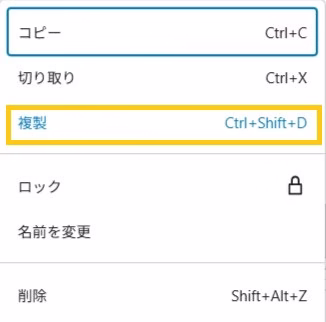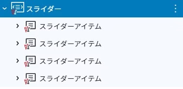3.スライダーの中にある『スライダーアイテム』にカーソルを合わせ、右横に表示されるの ⁝ (呼び方:縦の三点リーダー または ケバブメニュー)をクリックして『複製』をクリックします。これを繰り返して『スライダーアイテム』を4つ作ります。