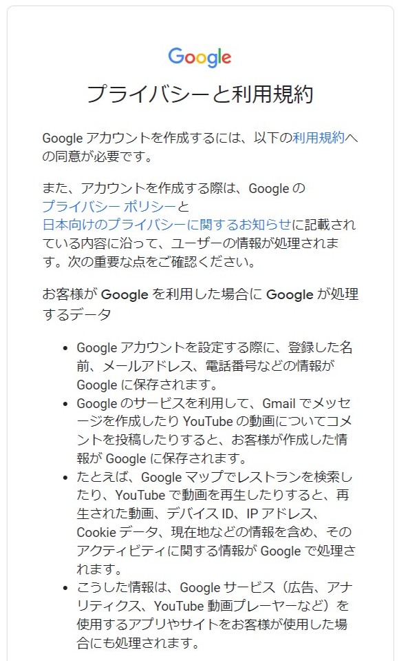 当サイトでは、通常のGoogleアカウント同様に、PTA用アカウントを作成する際も、正確な個人情報を入力してGoogleアカウントを作成することをお勧めしています。