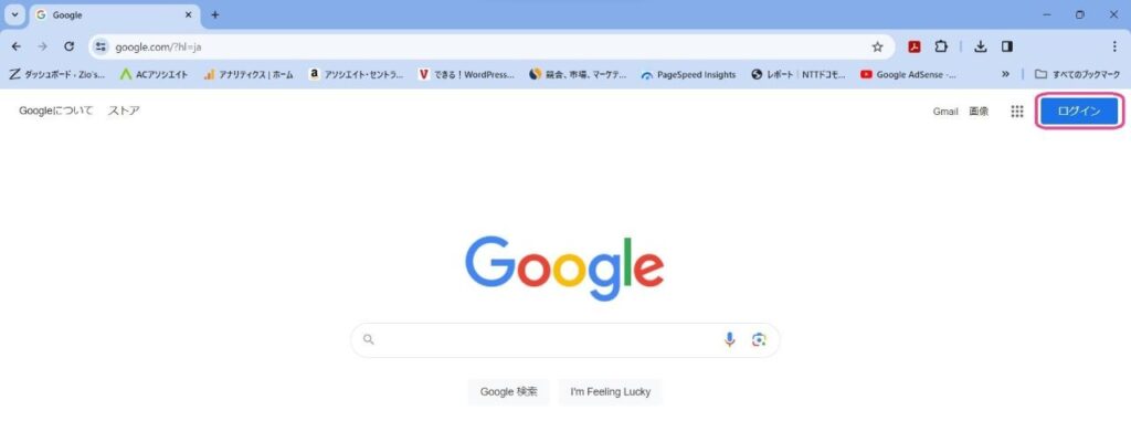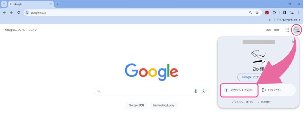 1.Google Chromeを開き、右隅の ログイン をクリック。または、画面右端のGoogleアカウント 〇 をクリックし、アカウントを追加 をクリックします。